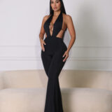 Sexy mono acampanado con detalle de cadenas en la zona del pecho.