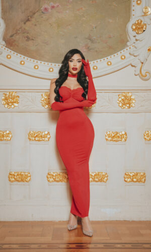 Magnífico vestido midi en color verde esmeralda acabado brillo, ...